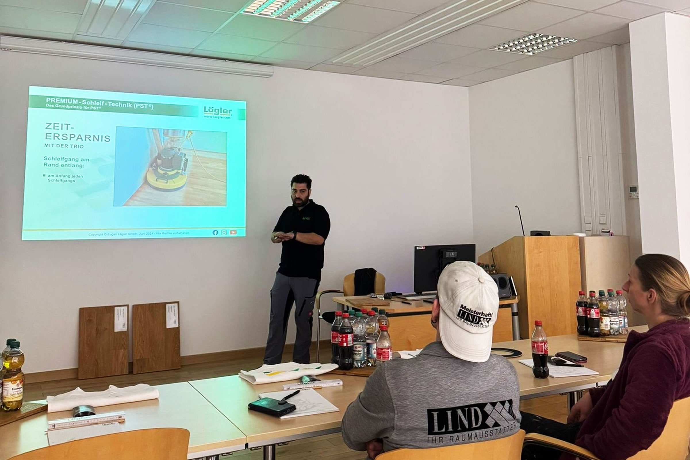 Unsere Mitarbeiter Mike und Nicky haben kürzlich an einem Praxisseminar der Firma Lägler teilgenommen. Dabei konnten sie ihr Fachwissen rund um moderne Maschinen und Techniken zur Bearbeitung und Aufbereitung von Holz- und Parkettböden weiter vertiefen.